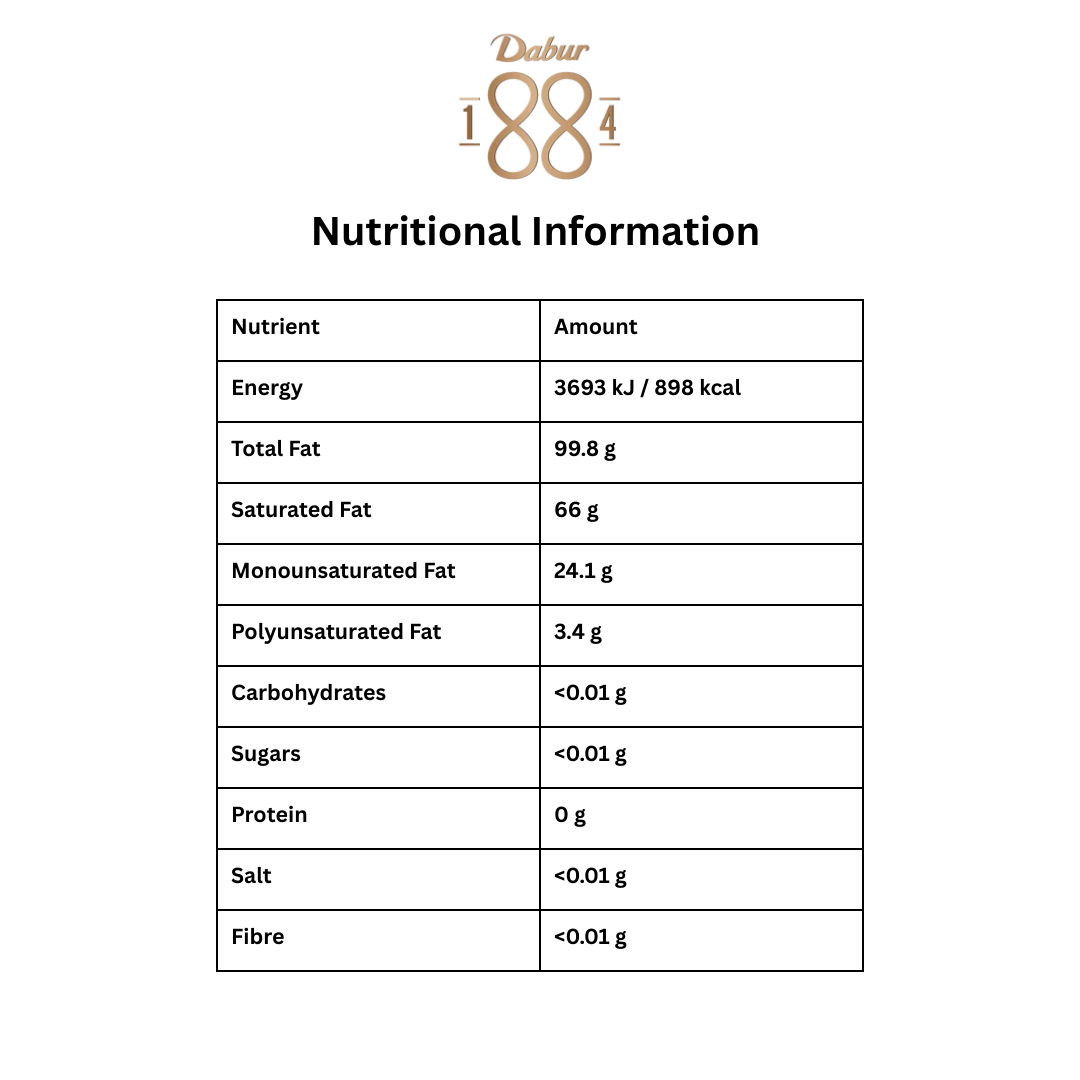 Dabur 1884 Organic Cow Ghee is made from pure, organic cow’s milk using traditional methods to deliver rich aroma, authentic taste, and high nutritional value. A versatile kitchen essential, it’s perfect for everyday cooking, frying, baking, or as a wholesome spread. Rich in healthy fats, vitamins, and natural goodness, this ghee enhances both flavor and nutrition in your meals.