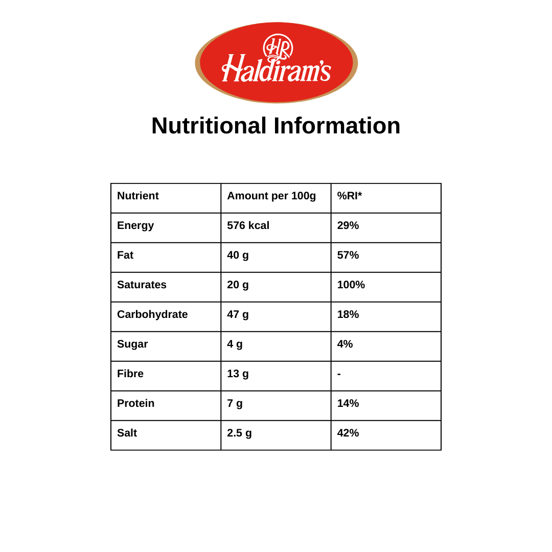 Refined Wheat Flour (57%), Vegetable Oil (Palm), Hydrogenated Vegetable Oil (Palm & Sesame Oil), Split Mung Bean (4%), Cashews, Raisins (3%), Chickpeas Flour, Salt, Sugar Powder, Mix Spices (Red Chilli Powder, Aniseed, Black Pepper Powder, Coriander Powder, Cardamom Powder, Mango Powder, Cumin Seed).
