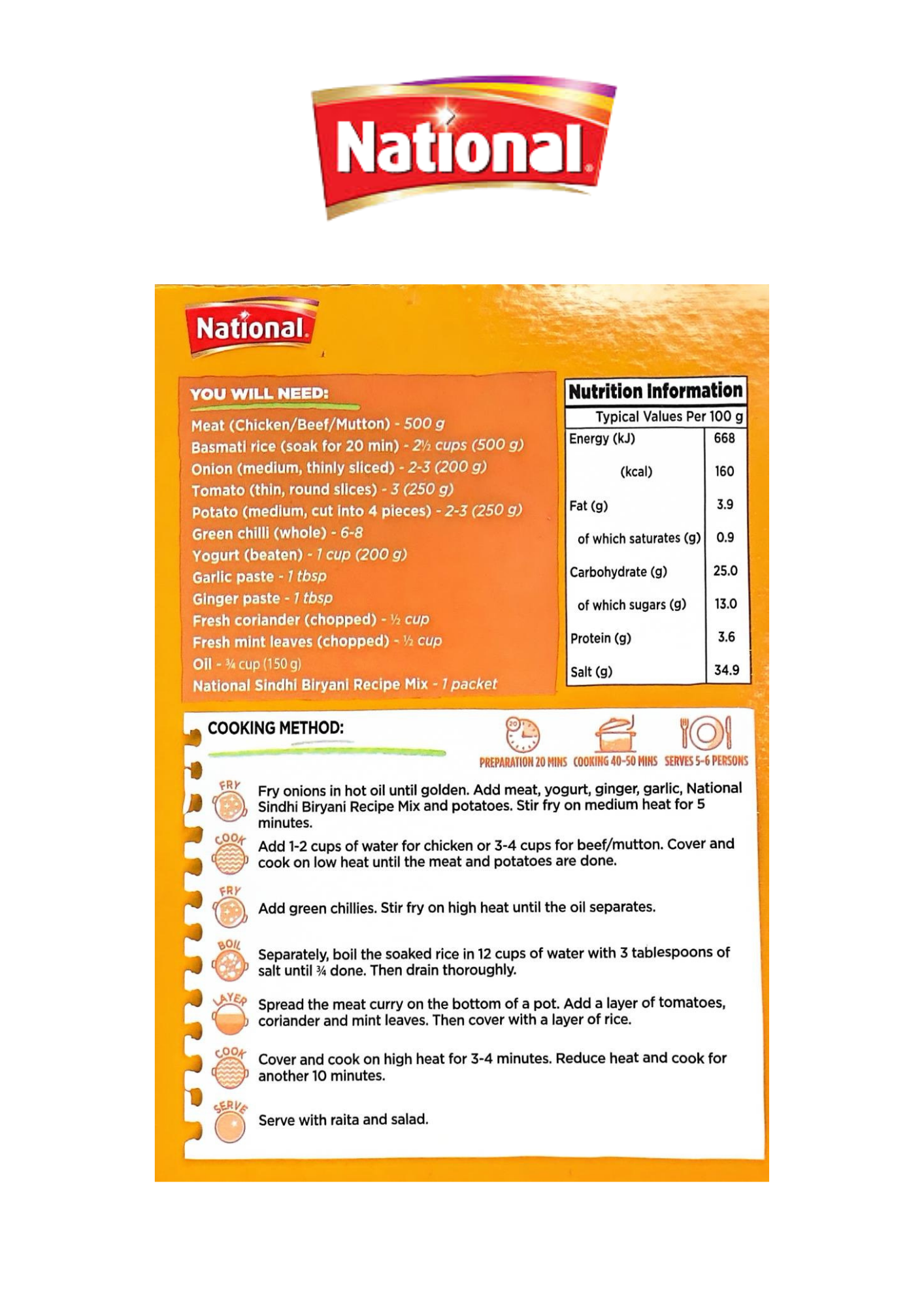 National Sindhi Biryani Recipe Mix is a unique blend of rich spices crafted to bring the authentic taste of traditional Sindhi biryani into your kitchen. With its perfect balance of heat, tanginess, and aroma, this mix helps you create flavorful rice layered with tender meat, potatoes, and fragrant spices. A true favorite for family feasts and special occasions.