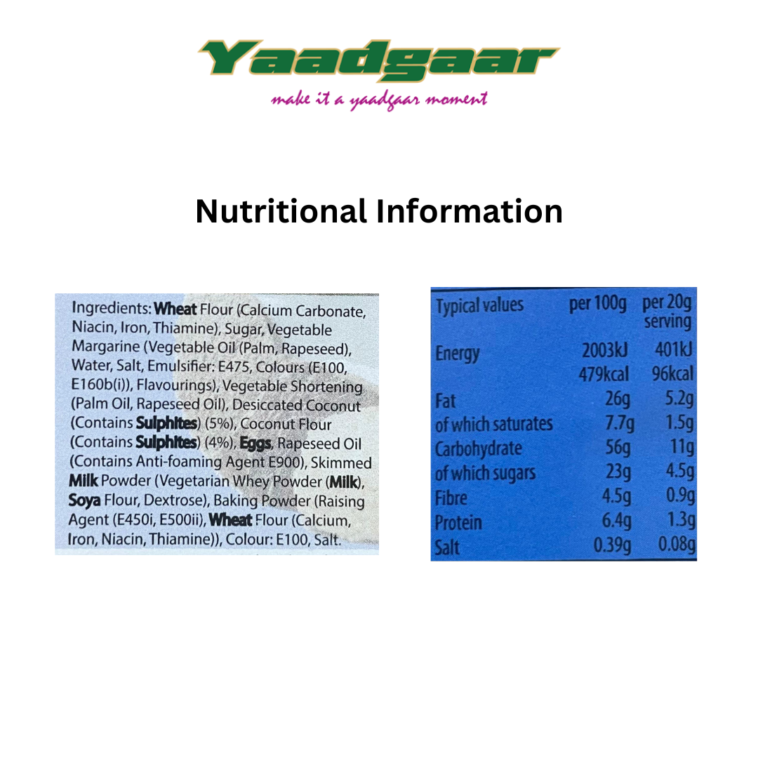 Crisp and golden biscuits infused with the tropical flavour of coconut, offering a sweet and fragrant treat in every bite. Perfect for enjoying with tea, coffee, or as a light snack.